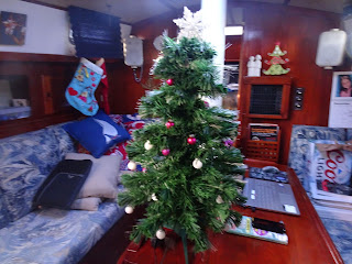Even though the weather is warm and mostly sunny, the Keys still love to decorate and show good will to all. I like to decorate for Christmas so I always bring along a few decorations and a small tree. David is not such an avid decorator so he tolerates, usually with a smile, my taking up precious storage space with "my stuff".
